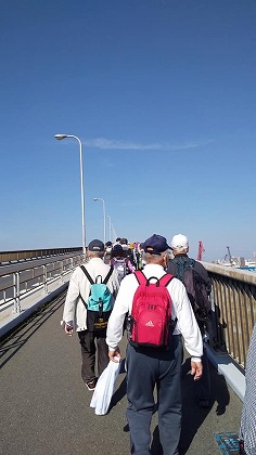 | なにわ展望パノラマウォ―ク 2020年11月18日 関西w「なにわ展望パノラマウォ―ク」12km +おまけ (5km) 大正橋公園から大正通を南下し、鶴町南公園で昼食休憩。 なみはや大橋を渡り終えたあと、築港から弁天町駅まで、ひたすら歩きました。 なによりも暑い一日となりました。 ![]() ![]() ![]() なお港区の中央大通はイチョウでしたが、写真は省略しました。 ![]() 鶴町南公園 (5.3km) で昼食休憩は早過ぎですが、文句は言えません。 ![]() なみはや大橋を渡るのは初めてではありませんが、登りが続くのは好きではありません。登り終えた途端に下り始めるのは、もったいないことです。 ![]() 大正内港の入口である (青色の) 千歳橋のバックにあべのハルカスあり。 ![]() ![]() 築港 (大阪港駅) から地下鉄中央線沿いに歩くと天保山運河を越えます。そこから見る風景はわたしのお気に入りです。 ![]() 同じところを横長に撮ってみました。こちらの方が好きですね。天保山の観覧車がよく見えます。手前に船が欲しいところです。 ![]() ![]() |