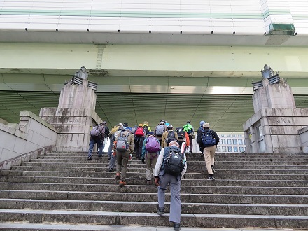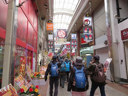 | 年忘れ天満天神御利益詣で 2021年12月15日 リーダーと歩こう楽しいウオーキング 「年忘れ天満天神御利益詣で」10q+おまけ(4q) 大阪市役所前・中之島公園→鉾流橋→天神浜→南天満公園→藤田邸公園→桜之宮公園→鶴満寺公園(昼食)→国分寺→天神橋筋→大阪天満宮→天満宮参道→水晶橋→大阪市役所前 わたしが入会しているウオーキング協会の(今年最後の)イベントに参加しました。今年はコロナ禍のせいもありますが、個人的に参加率が低かったようです。市内でのウオークは10qと少ないので、こんな時は自宅から最寄りの駅まで往復して距離を稼ぐことにしています。 ![]() ![]() 集合前に、三好達治「乳母車」を訪ねました。栴檀木橋の下あたりです。 ![]() ![]() 対岸の貨幣博物館は一度訪れたいところです。サクラの通り抜けのときに、すぐ横を歩きますが、中に入ってみたいです。 ![]() ![]() OAP(大阪アメニティパーク)をカットして、鶴満寺公園で昼食休憩となりました。 ![]() 昼食後に訪れた天神社横の公園に慰霊碑が建っていました。わたしがまだ大阪に来ていないときですが、地下鉄工事のときにガス爆発があり、多くの犠牲者が出たとのことです。 ![]() 公園の隣が摂津の国分寺でしたが、あちらこちらに摂津の国分寺はあるんですね。 ![]() 国分寺の中に、天六ガス爆発のときの慰霊が祀られているようです。 ![]() よく分かりませんが、なぜか聖武天皇記念碑がありました。 ![]() 天六から天神橋筋商店街に入ります。いつものことですが、皆さんに迷惑をかけないように、真ん中を歩きます。 ![]() 天六から天二まで歩きましたが、一番賑やかだったのは天五でした。子どもたちの作品が飾ってありました。 ![]() ![]() ![]() 御利益の一つです。検定試験に出題されていました。西山宗因は、井原西鶴の俳諧の師匠です。 ![]() ![]() ![]() 水晶橋を撮るために、第一集団の最後尾まで下がりました。 ![]() |