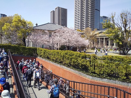 | 楽しいウォーキング 2022年3月30日 関西w 「春爛漫八百八橋桜花観賞」 飛翔橋、都島橋、源八橋、桜宮橋、天神橋を渡ったわけです。大川両岸の、ほぼ満開のサクラを存分に愛でることができました。サクラと人の多さに、酔ってしまいました。 9km+おまけ(3km) ![]() ![]() ![]() ![]() ![]() ![]() 大川左岸のオオシマザクラは、微妙に赤も混じっています。 ![]() ![]() 桜宮橋を渡ったところ(右岸)には、泉布観と桜宮公会堂跡があります。 ![]() ![]() 南天満公園のサクラの前で、アクアライナーが方向転換しています。天神橋から撮りました。 |