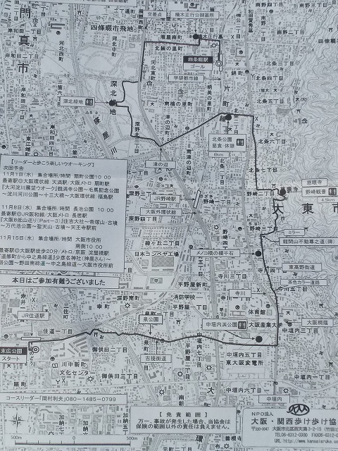 | 「野崎観音と深北緑地」 2023年10月25日 リーダーと歩こう 楽しいウォーキング 「野崎観音と深北緑地」 10km+おまけ(3km) 以前にも同じウォ―ク仲間と歩いた道ですし、一人で歩いた東高野街道の一部でもありました。コスモスが満開を過ぎていたのが残念なり。 ![]() ![]() 公園から見える、あの高いビルの1.3.4階に大東市立生涯学習センターがあり、行ったことがあります。 ![]() ![]() ![]() 滅多にない、歩きやすい、快適な街道の一つにあたります。 ![]() ![]() ![]() ![]() ![]() ![]() ![]() ![]() 「大東」市内に「四条畷」駅あり。 JRの反対で、駅名(漢字表記)が「四條畷」とならない。理由はお金がかかるから。 |