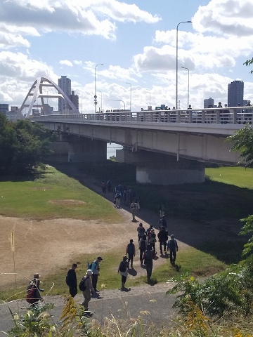| 淀川展望ウォーク 2024年11月6日 リーダーと歩こう 「大河 淀川展望ウォーク」 10km+おまけ(4km) 最高気温20℃、最低気温14℃ 最も歩くに適した気温でした。 扇町公園をスタートしました。長柄川を渡って淀川右岸の河川敷を歩き、十三大橋を渡ってJR福島駅に戻るコースでした。 河川も河川敷も広くて、大和川の比ではありませんでした。 ![]() ![]() ![]() ![]() ![]() ![]() ![]() ![]() 堤防に上って梅田方面を眺める。 スカイビルが目印になります。 ![]() ![]() ![]() ![]() |