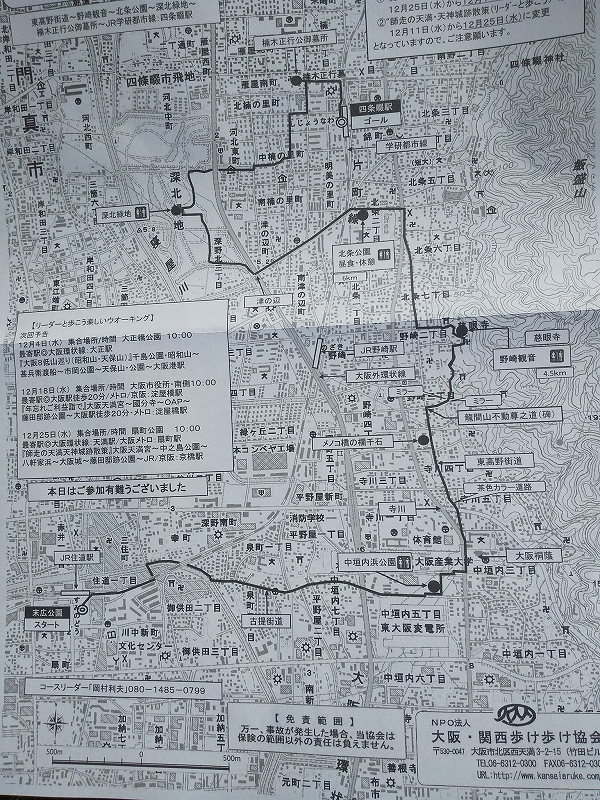MAP ![]() 扇町公園→天神橋筋商店街→大阪天満宮→八軒家浜→熊野街道→榎大明神→高津公園→とんぼりリバーウォーク→南堀江1南→日吉公園→川口基督教会→上船津橋北詰→JR環状線・野田駅 |