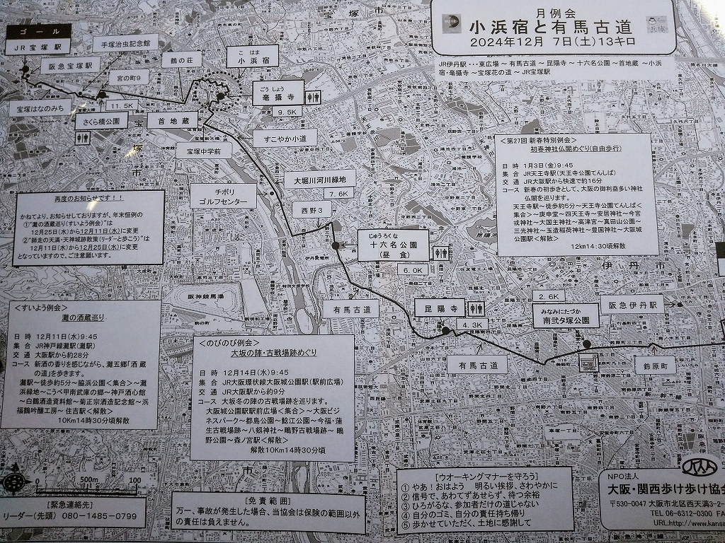 | 小浜宿と有馬古道 2024年12月7日 月例会 小浜宿と有馬古道 13km+おまけ (4km) :4時間5分 JR伊丹駅→南弍タ塚公園→昆陽寺→十六名公園→小浜宿→手塚治虫記念館→宝塚はなのみち→JR宝塚駅 皆さんの足が速く、 (必死で) ついていくのが精一杯でした。 ![]() ![]() ![]() ![]() ![]() ![]() ![]() ![]() ![]() ![]() ![]() ![]() 3つの街道が通ったので、さぞかし賑わったものと思われます。 (京伏見街道、有馬街道、西宮街道) ![]() ![]() ![]() ![]() ![]() ![]() ![]() |