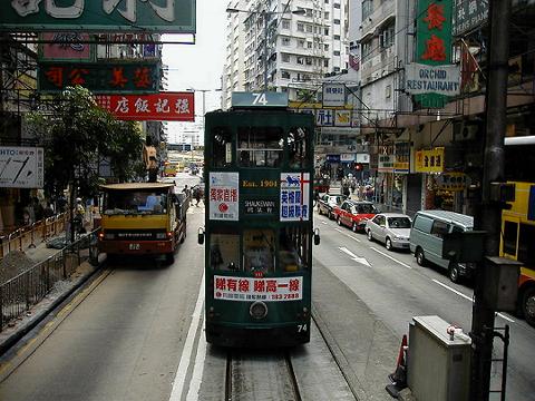 ↑ 写真は、香港島北部の中心街を走るトラム(Tram)