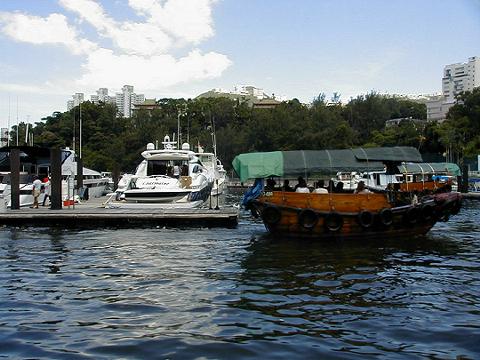 ↑ 写真は、ホテルからみたリゾートマンションとヨットハーバー(新界:黄金海岸) 地下鉄には乗らなかったが 8/23さまざまな交通機関を利用した。道の狭さをものともせず、すれ違う車の運転技術は文句なしに世界一だろう。お互いに譲り合いながらも、流れはスムーズである。おまけに一度も耳障りなクラクションを聞かなかった。マナーの良さも世界一かも知れない。 バス(巴士)をメインとしながら、市民の足となっているトラム(Tram、2階建て電車)、本来の汽車(火車)、さほどの意義を感じなかった世界一長いというエスカレーター(Hillside Escalator)、今や少数となった水上生活者の生活ぶりを間近に覗いたアバディーンの水上タクシー、夜景を眺めながらカオルン半島に渡ったスター・フェリー(Star ferry)などのすべてを体験した。ちなみに自動車(汽車)は日本製が多いが、タクシー(的士)だけはフォルクスワーゲン、赤とグレーのツートンカラーだった。暑さよけのため、屋根は二重構造になっていた。